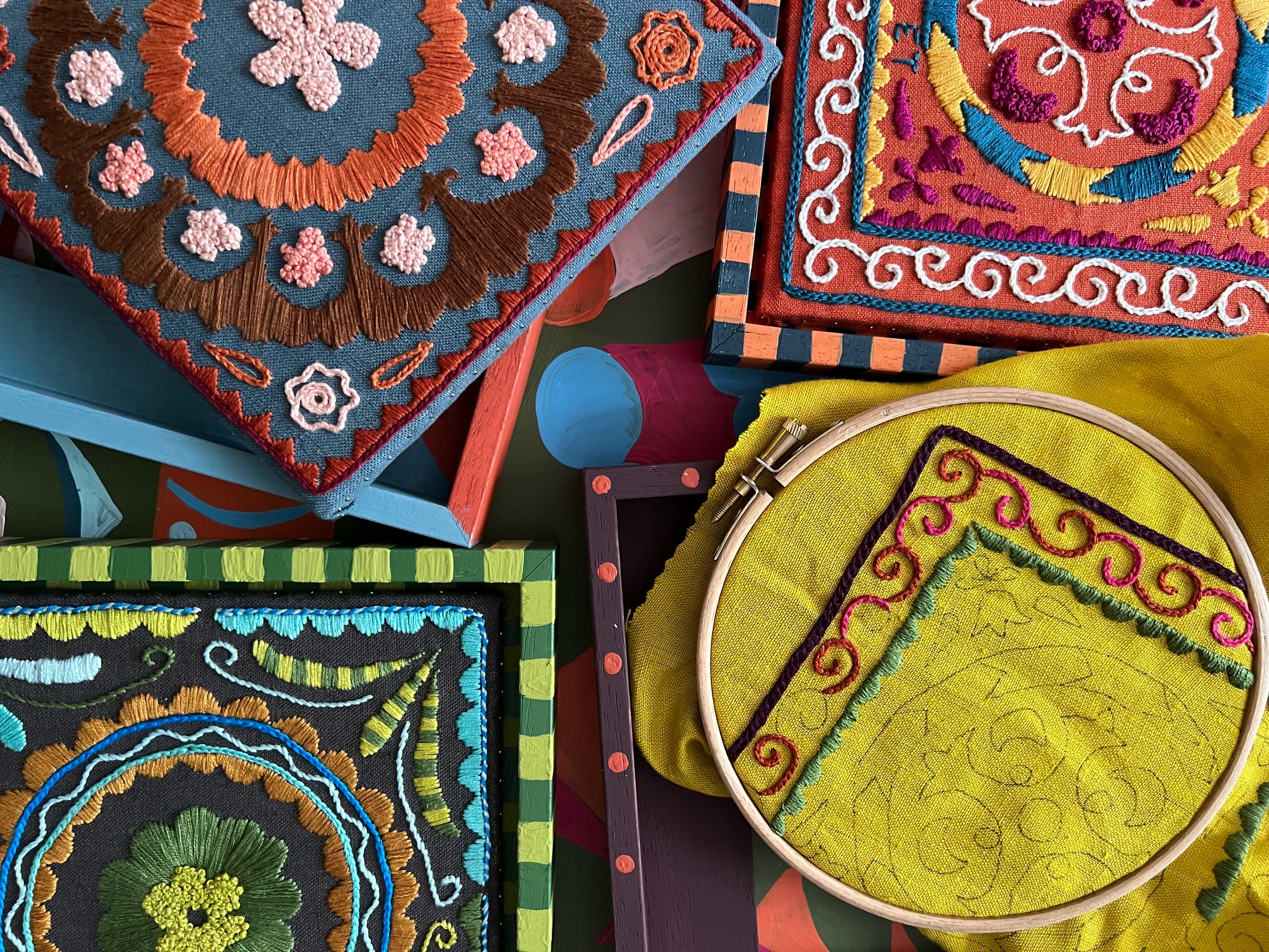 Freestyle embroidery is all about having the confidence to express yourself in thread. Over the course of 90 minutes, I will take away the fear so many people experience when faced with a blank piece of paper, and empower you to start designing. I will show you my unique approach for finding inspiration, choosing colours, constructing designs and more, giving you a structured approach to finding your creative voice.